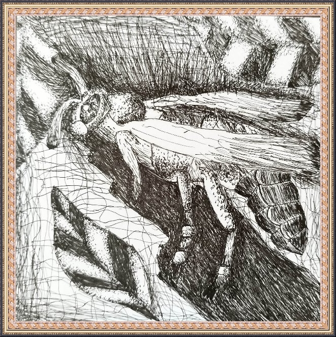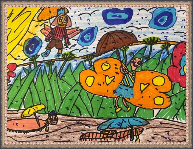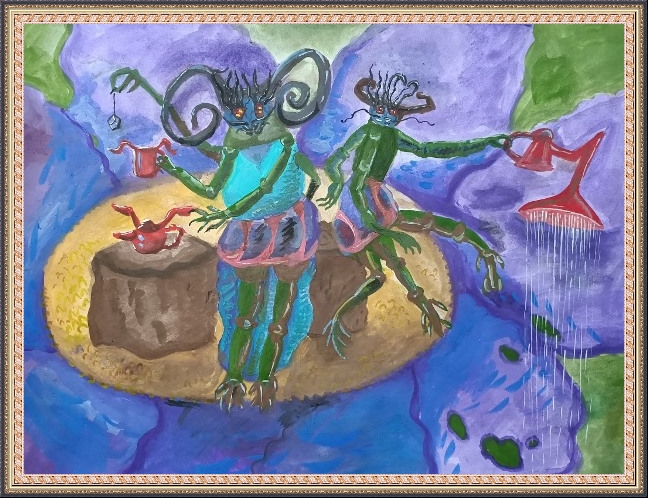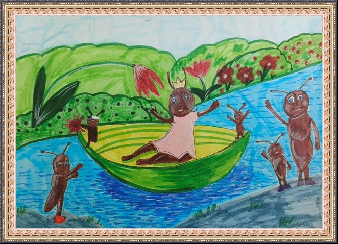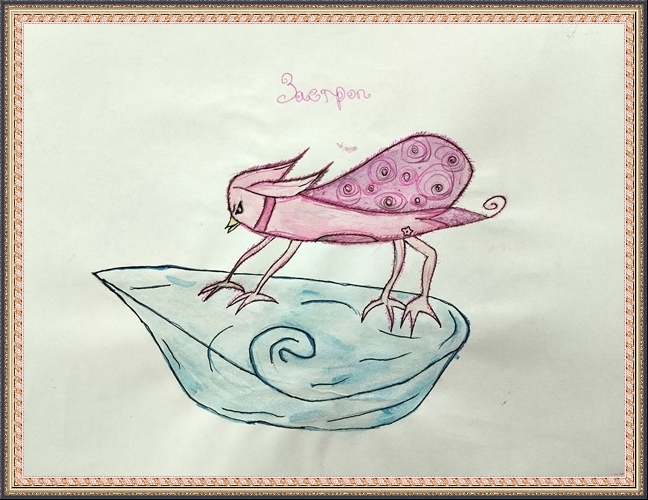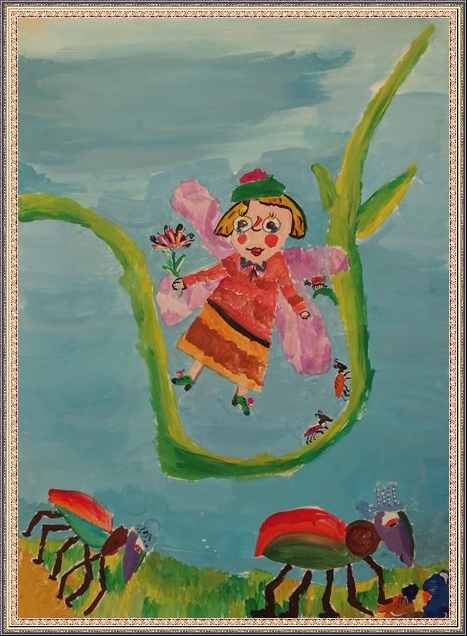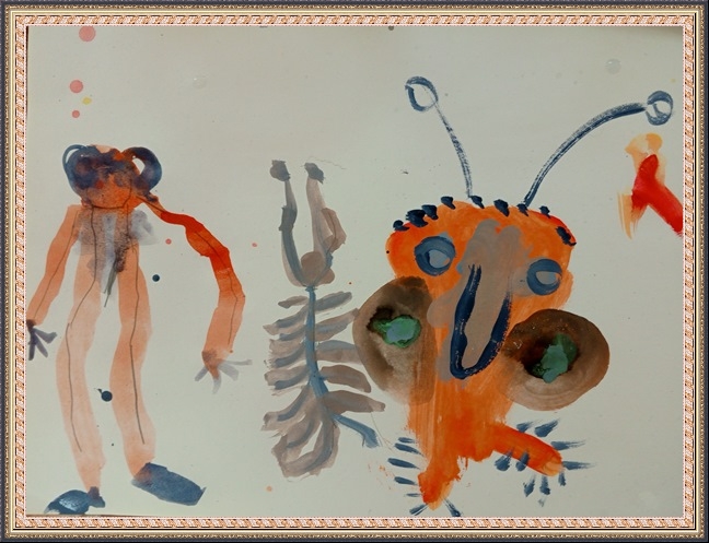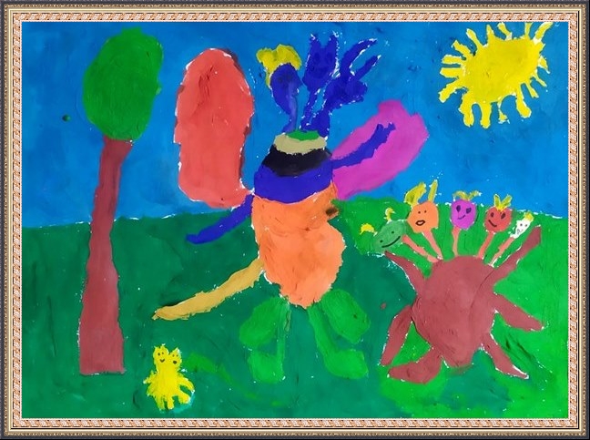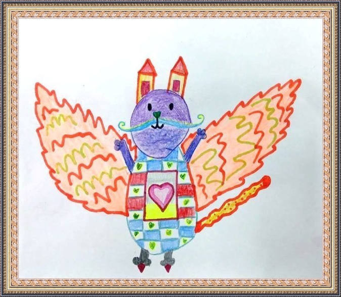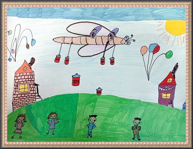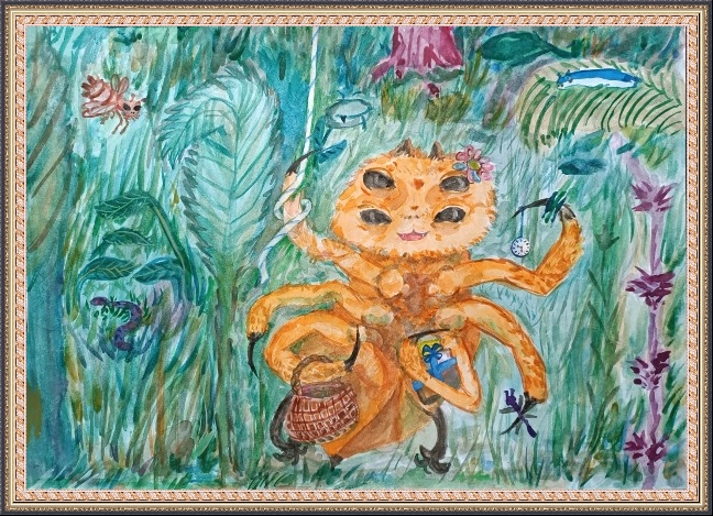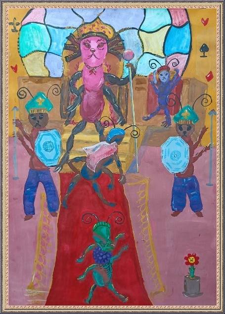 Третье место - Вольфтруб Анна (скачать документ), "Комар с крыльями бабочки держит ведерко с водой", педагог - Ревуцкая Олеся Сергеевна, Детская художественная мастерская им.М.А.Врубеля, Москва, СВАО