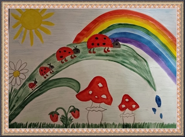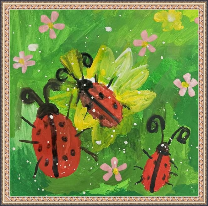Победитель - Тюхматьева Анастасия (скачать документ), "Семья божьих коровок в красных сапожках идёт на прогулку после дождя", педагог - Ханбикова Альфия Хайдаровна, МДОУ Старокулаткинский детский сад №1 "Гульчачак", Ульяновская область, Старокулаткинский р-н, п. Старая Кулатка
