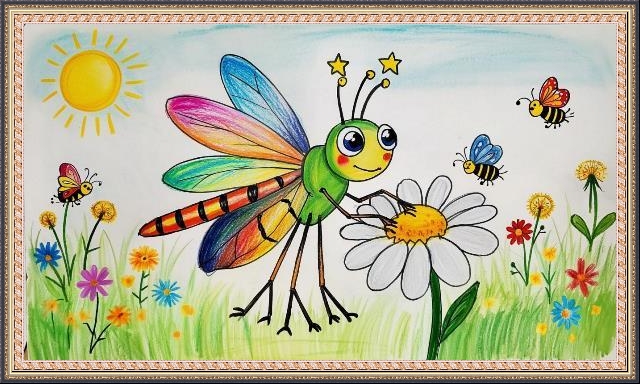 Второе место - Лукожева Эмина (скачать документ), "Нарядная стрекоза", педагог - Дацко Светлана Викторовна, МБУДО Моздокская детская художественная школа, Республика Северная Осетия - Алания, Моздокский р-н, г. Моздок