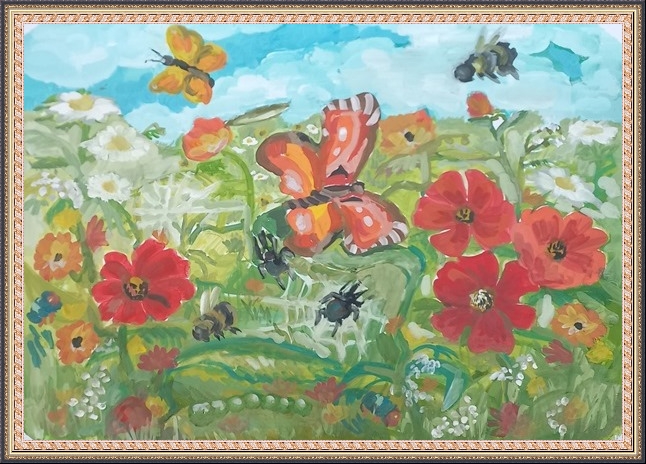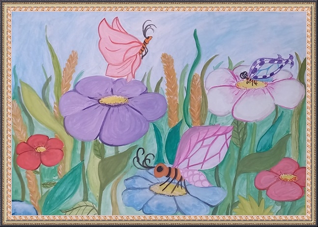 Второе место - Петрусенко Алиса (скачать документ), "Насекомые и цветы", педагог - Медведева Нина Петровна, Центр внешкольной работы, Ставропольский край, Советский м.о., г. Зеленокумск