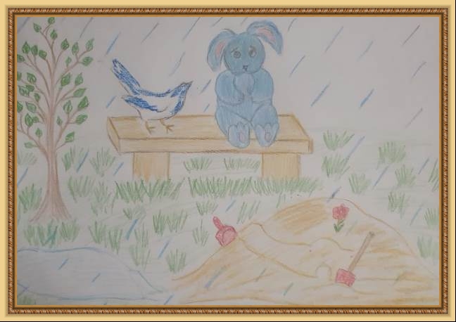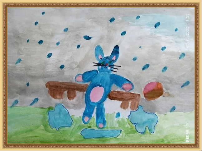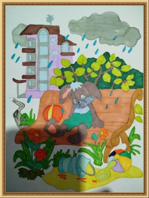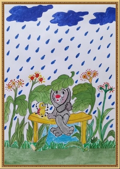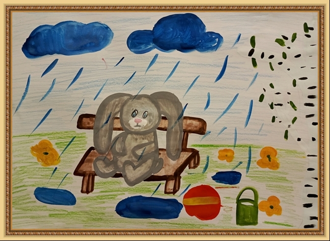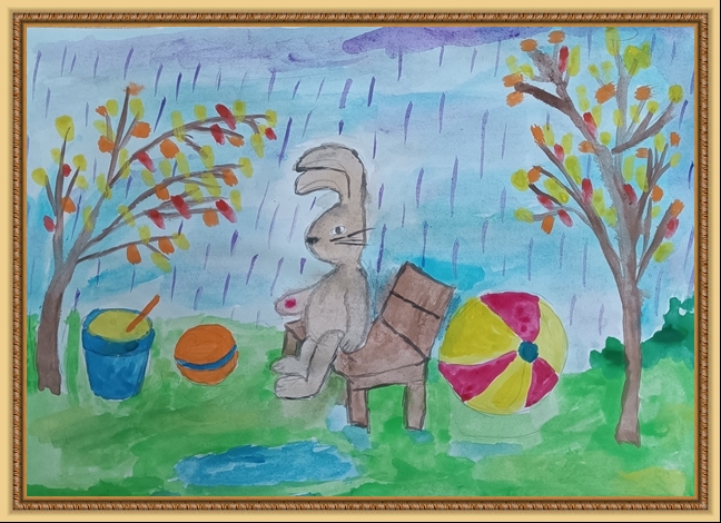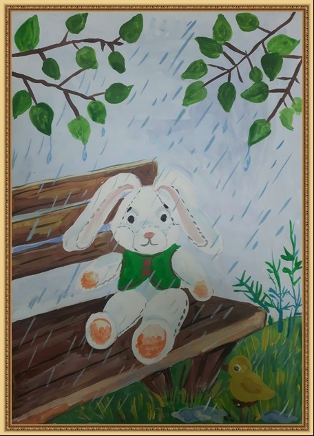 Второе место - Ушакова Арина (скачать документ), "Под дождём остался зайка", педагог - Агуреева Валентина Васильевна, РЖД детский сад №45, Кемеровская область, Новокузнецк г.о.
