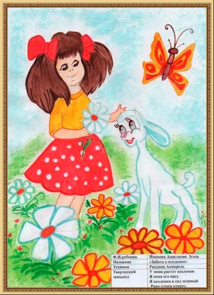 Третье место - Филиппова Елизавета (скачать документ), "У меня живет козленок", педагог - Асанова Галина Дмитриевна, МОУ ЦДОД имени Н.М.Тарарушкина, Ярославская область, Ростовский р-н, г. Ростов
