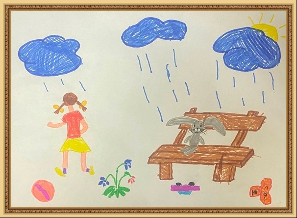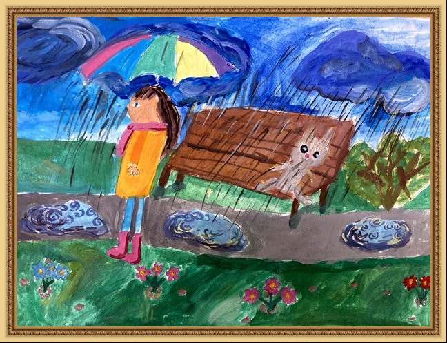 Второе место - Осипова Галя (скачать документ), "Дождь пройдёт - мы будем вместе.", педагог - Огурцова Ирина Владимировна, МБДОУ детский сад №3 "Светлячок", Тверская область, Осташковский г.о.