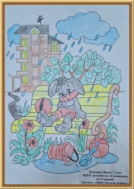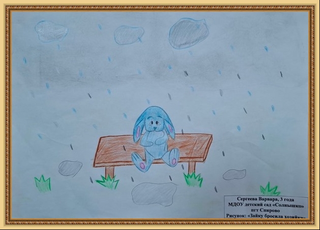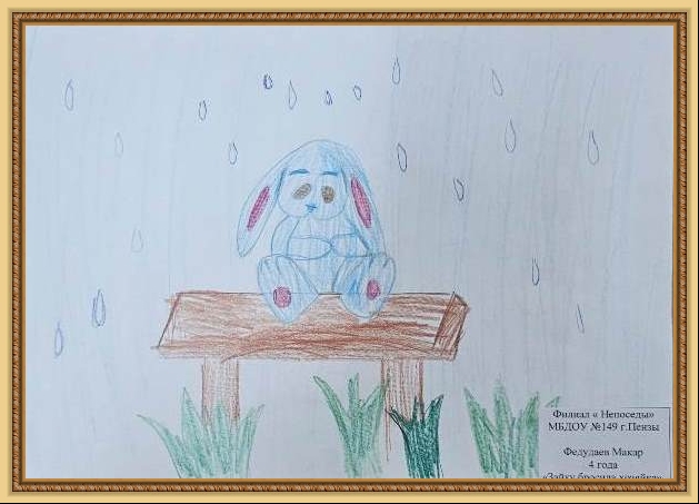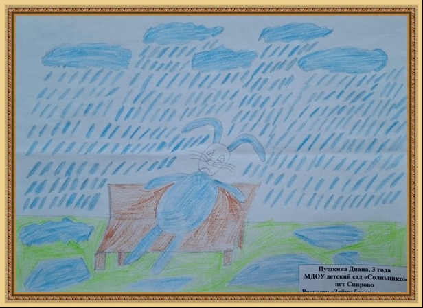 Победитель - Бульба Аня (скачать документ), "Скучно зайке под дождём", педагог - Давыдкина Людмила Алексеевна, МДОУ Детский сад №2, Тверская область, Бельский м.о.