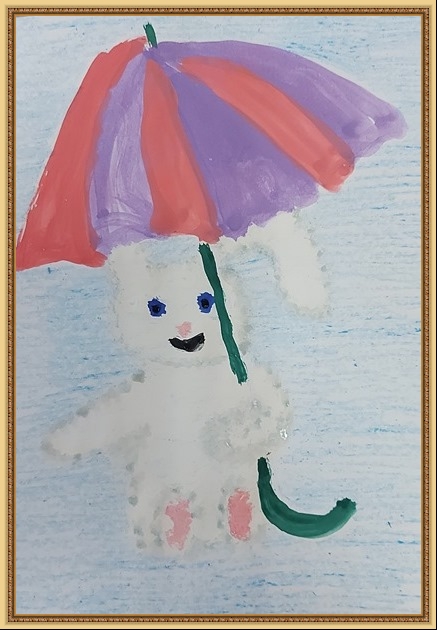Второе место - Усачёва София (скачать документ), "Зайка под дождём", педагог - Асташенкова Алла Анатольевна, МДОУ Детский сад №2, Тверская область, Бельский м.о.