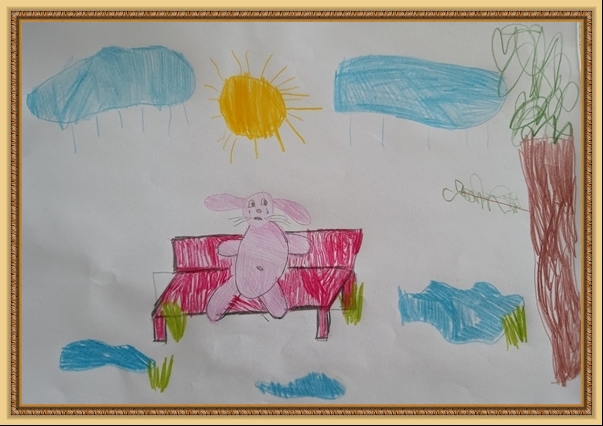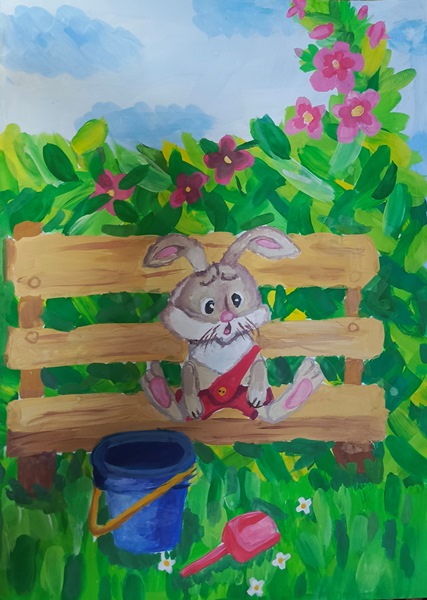 Победитель - Савченко Владислав (скачать документ), "Зайка на лавочке", педагог - Дюбкин Людмила Васильевна, ГКДОУКВ Мангушский детский сад "Алиса", Донецкая Народная Республика, Мангушский м.о., пгт. Мангуш